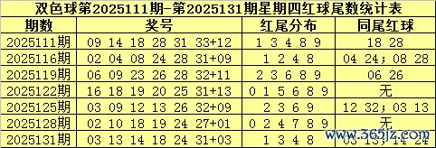 双色球第2025133期开出奖号为:05 14 17 19 20 33+07,红球余数踱步为0 3 4 5 7 9,莫得开出同尾红球号码。
